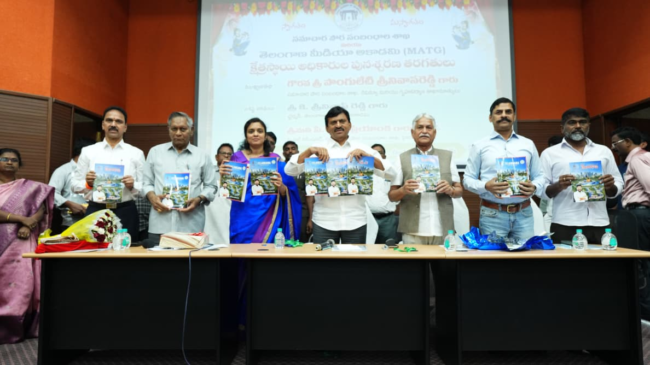 కింద ఉన్న ఫోటోలు: తెలంగాణ ప్రజా ప్రభుత్వం ఏర్పడి రెండేళ్లు పూర్తయిన సందర్భంలో వెలువడిన తెలంగాణ మాస పత్రిక ప్రత్యేక సంచికను మంత్రి పొంగులేటి శ్రీనివాసరెడ్డి విడుదల చేసిన దృశ్యం
